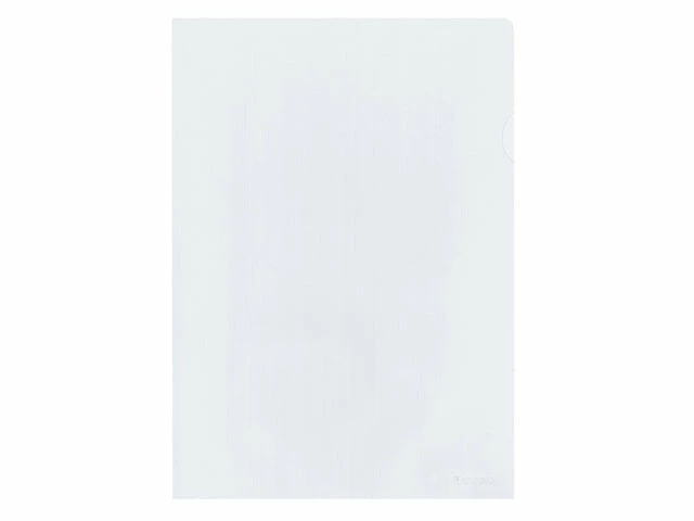 L-map van stevige kwaliteit transparant PP 120mu, generfde uitvoering, copysafe en antistatisch. De map is aan de boven- en rechterzijde open en is voorzien van een duimgreep. Formaat A4, verpakt 10×10 stuks.