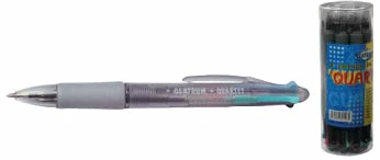 Vier kleuren balpen, met ergonomische rubberen grip. Blauwe, zwarte, groene en rode inktvulling.
