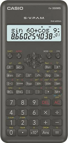 Bereken eenvoudig getallen met de Casio FX-350MS wetenschappelijke rekenmachine met ongeveer 240 functies en Dot-matrix. Het grote tweeregelige display van deze Casio wetenschappelijke rekenmachine biedt gemakkelijk plaats aan 10+2 cijfers. U kunt altijd teruggaan en eerdere resultaten controleren met de multi-replay-functie van deze Casio-rekenmachine. De Casio FX-350MS biedt u negen variabele geheugens voor gemakkelijke en gemakkelijke opslag. De plastic toetsen van deze wetenschappelijke rekenmachine van Casio zijn comfortabel en gemakkelijk te gebruiken. De opschuifbare harde koffer van deze Casio-rekenmachine houdt hem veilig en is bestand tegen ruw gebruik.