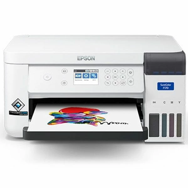 Direct uit de doos heel snel en betrouwbaar dye-sub printen met de SureColor F170 van Epson. Deze hoogwaardige dye-sublimatieprinter is ideaal voor het personaliseren van onderscheidingen, mokken, muismatten en meer en levert afdrukken van professionele kwaliteit met behulp van krachtige PrecisionCore®-technologie. De SureColor F170 is een echte kant-en-klare oplossing en wordt geleverd met echte Epson dye-sublimation-inkttechnologie, een automatische invoerlade voor 150 vellen en Mac- en Windows-afdruksoftware. Bovendien kunt u met zijn opmerkelijk compacte en ruimtebesparende ontwerp de werkplaatsruimte maximaliseren.