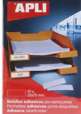 Zelfklevende insteekhoesjes voor etiketten met de afmetingen 25 x 75 mm. Ideaal voor het bevestigen aan ordners, archiefdozen, hangmappen, tijdschriftenrekken, lades, opbergdozen, keukenpotten, brievenbakjes, enz. omdat de informatie op de kaart die erin zit, naar behoefte kan worden gewijzigd.