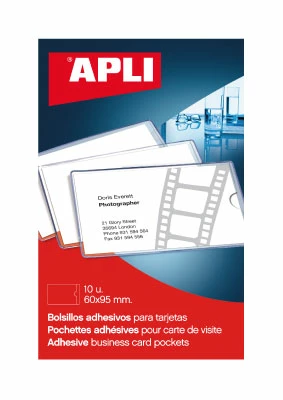 Zelfklevende insteekhoezen om kaarten in op te bergen. Dankzij het kleine formaat (95 x 60 mm), speciaal ontworpen voor kaarten, zijn deze zakken ideaal om uw visitekaartje in gedrukte presentaties, dossiers, catalogi, boeken, plannen, bestanden, archiefdozen, enz. te bewaren. Kan ook op uw mobiele telefoon of elektronisch apparaat worden geplakt om uw kaarten of tickets in op te bergen.