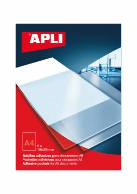 Zelfklevende insteekhoezen, maat A5. Ideaal om op te bevestigingen op archiefdozen, mappen, boeken, enz. zodat u een extra zakje hebt om uw documenten en afbeeldingen in op te bergen of bij te sluiten. Ontdek het hele gamma van APLI zelfklevende insteekhoezen om uw dagelijks werk op kantoor of thuis te vergemakkelijken.