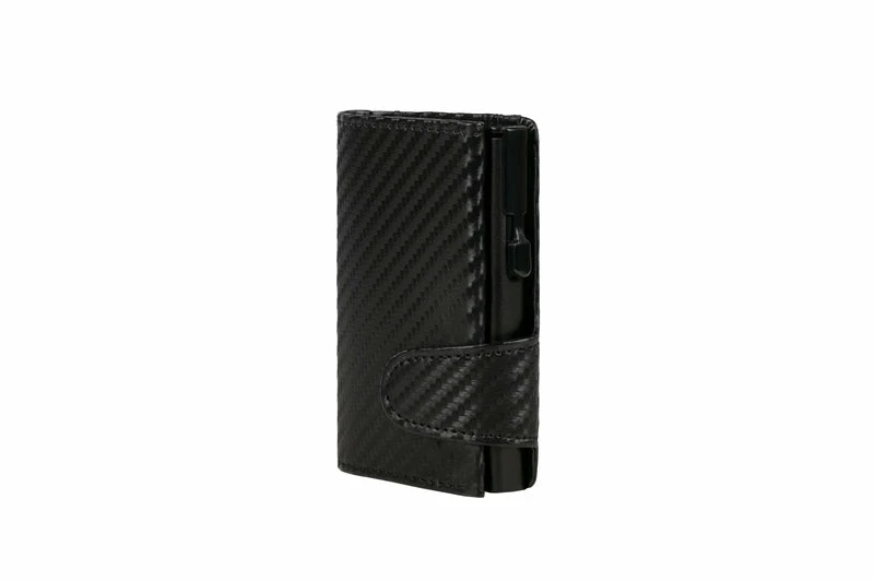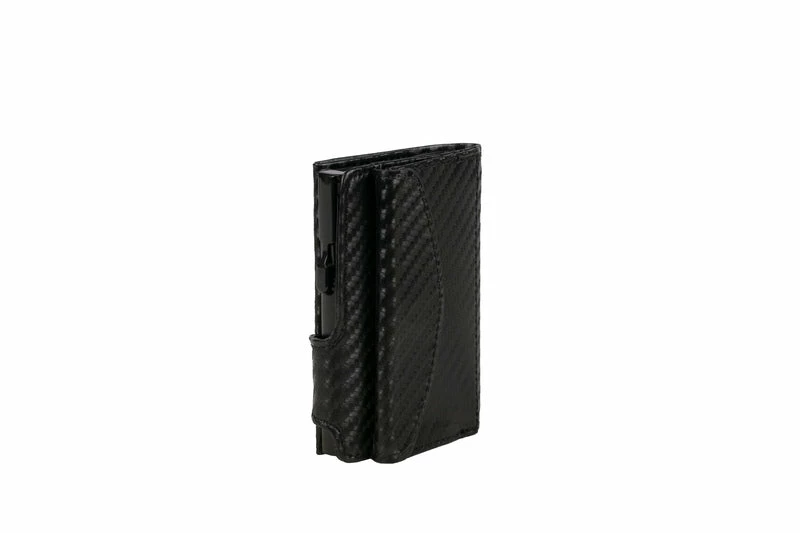 Pasjeshouder Clicksafe RFID kunstleer carbon zwart 8 pasjes met opbergvak voor muntgeld