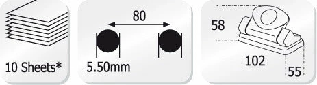 Kleine perforator voor het huishouden en home office. Capaciteit maximaal 10 vel. Metalen apparaat. Verwijderbare opvangbak. Passend bij nietmachines ‘Trendy’.