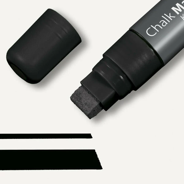 Met de krijtstiften 150 met extra brede schrijfpunt bereikt u uitzonderlijke, opvallende effecten bij het schrijven op glas en alle gladde, op glas lijkende oppervlakken, bijv. bij het gebruik met de glas-magneetborden artverum®, etalageruiten of spiegeloppervlakken. Door de wigvormige schrijfpunt van 5 – 15 mm is de stift bijzonder variabel inzetbaar en zowel voor een dun geschreven tekst alsook voor een dikke, decoratieve en opvallende tekst geschikt. Zo zijn uw notities ook op grote oppervlakken altijd goed leesbaar. De krijtkleur dekt heel goed, is daardoor voor alle donkere en transparante oppervlakken geschikt en is restloos vochtig of droog schoon te vegen. Gebruik daarvoor de speciaal ontwikkelde delta-microfasedoek van Sigel.
