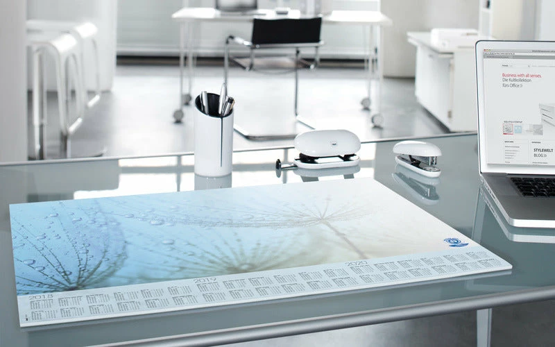 Afscheurbare bureauonderleggers formaat 59,5 x 41 cm. De bureauonderleggers zijn van 100% 80grs recycling papier. Beschrijfbaar, met een actuele 3-jarige kalender. Stabiel verlijmd met 30 vel per blok. Design Drops. 2018/19/20