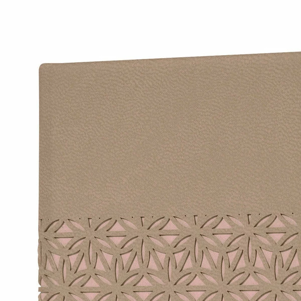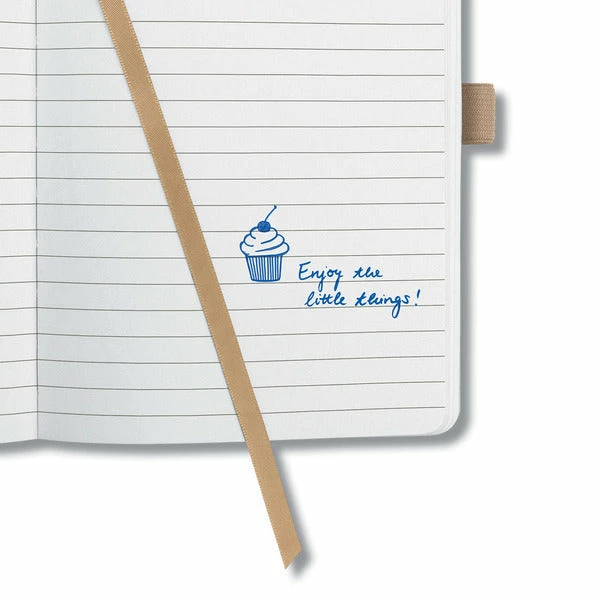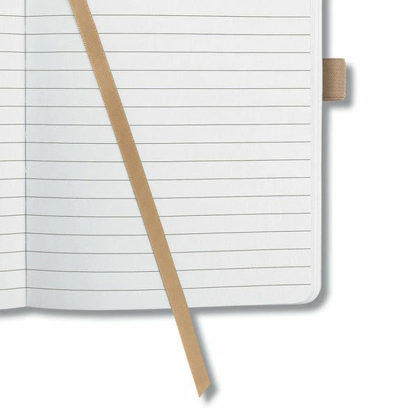 Notitieboek met wit gelinieerd papier, 80grs (zuurvrij, houtvrij en elementair chloorvrij). 174 pagina’s waarvan 16 geperforeerd. Het notitieboekje is voorzien van penlus, elastieksluiting, leeslint en opbergvak. De cover is gemaakt van zacht kunststof met een 3D effect. Formaat A6: 95x150x16mm. Kleur ‘desert brown’.