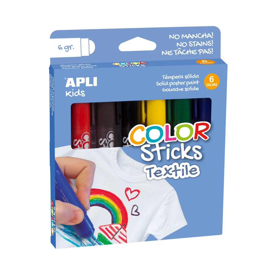Textielverf in massieve stift vorm. Geleverd in de kleuren geel, rood, groen, blauw, bruin en zwart. Ideaal om te tekenen op textiel, zoals t-shirts of spandoeken enz. APLI Kids Textiel Sticks geven geen vlekken, hebben een satijnen afwerking, zodat ze geen vernis nodig is. Drogen snel, in minder dan 3 minuten, scherpe, levendige en intense kleuren. U kunt verschillende afwerkingen bereiken afhankelijk van de druk die wordt uitgeoefend: lichte druk = krijt effect; veel druk = dekkend effect. Als de tekening klaar is, barst hij niet, blijft flexibel en bevat geen oplosmiddelen.