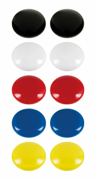 Magneten voor het bevestigen van mededelingen op magneethoudende borden. Leverbaar in verschillende diameters, in diverse kleuren en assorti. 25×11,8mm. Cap: 4-6 vel 80g papier. Kleur assorti. Blisterkaart à 10 stuks.